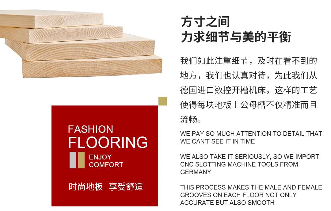 隨著生活方式的改變與生活節(jié)奏的加快,產(chǎn)品的情感功能和內(nèi)在精神受到人們的追捧。地板在實用性、耐用性的基礎(chǔ)上,每一片地板材選用品質(zhì)良好的木材,在工藝上,環(huán)環(huán)相扣,層層把關(guān),確保每片地板的良好材質(zhì),使屋子有了其獨(dú)特的味道,用以營造家的氛圍。
